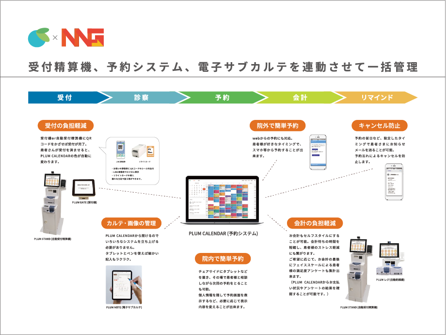受付精算機や予約システムを連動させながら、医院での業務負担を軽減出来ることを分かりやすくまとめました。